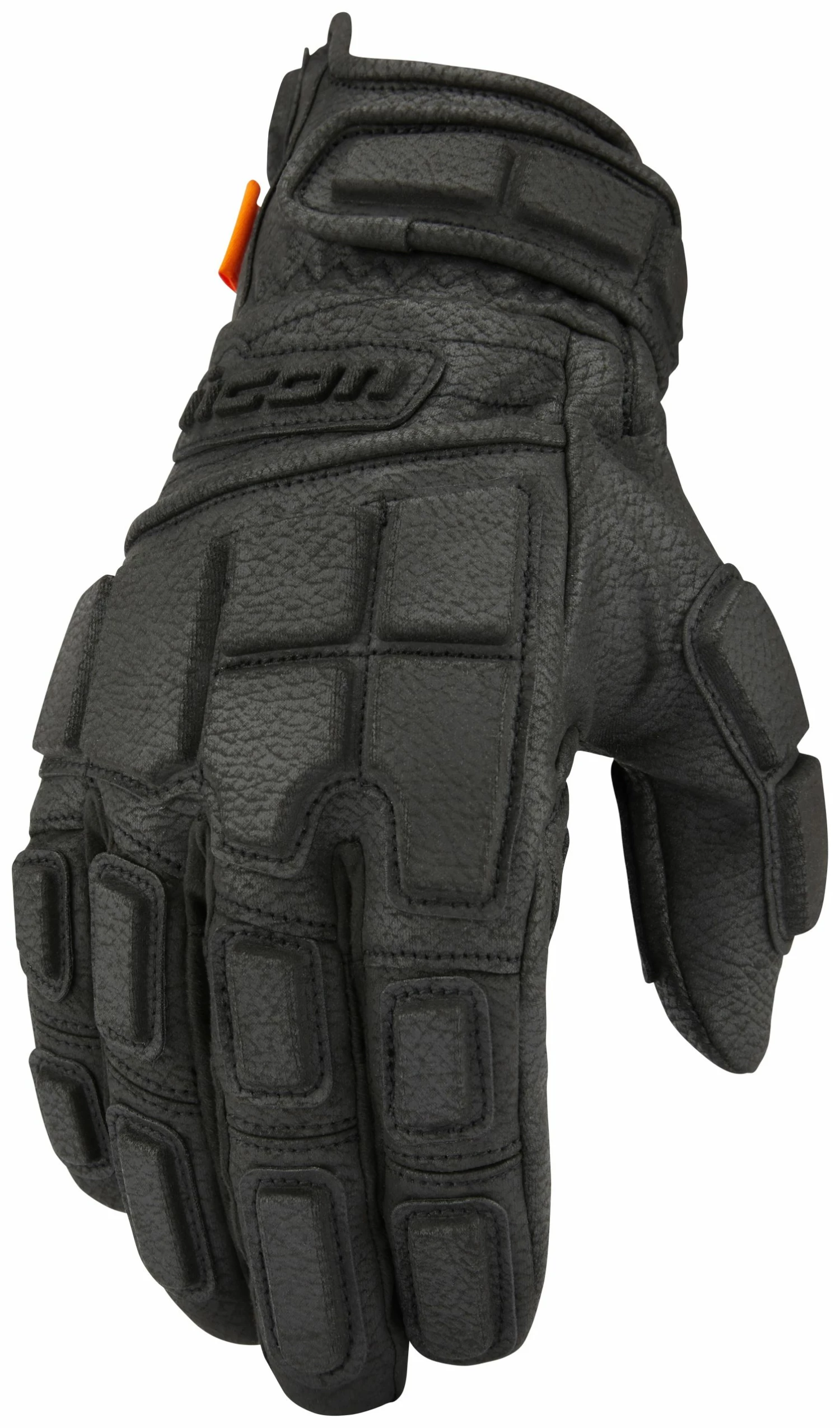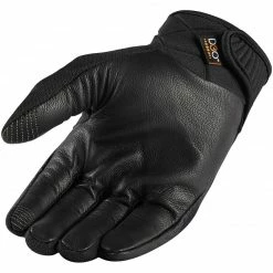 The Icon Motorhead3 gloves feature an Ax Laredo synthetic chassis for its hide-like feel and positive control feedback. D3O inserts throughout the glove provide the significant coverage required for the premier street battle dress. Hook and loop wrist closure allows for easy on/off as well as adjustability for comfort.